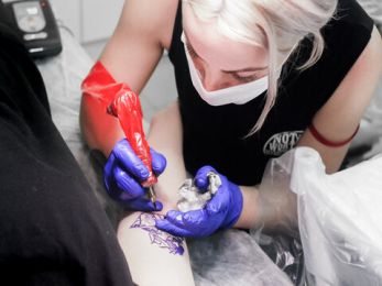 Подбирать краски и иглы, оборудовать рабочее место, стерилизовать инструменты и работать с тату-машинкой.